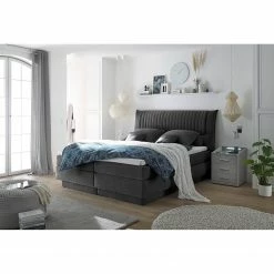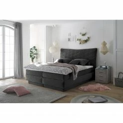 Loftscape Boxspringbett Tevin – Anthrazit – 160 x 200cm – Tonnentaschenfederkernmatratze – H3