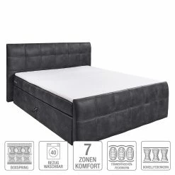 Loftscape Boxspringbett Ingebo Kunstleder – Schwarz – 160 x 200cm – Bonellfederkernmatratze – H2