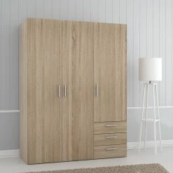 Loftscape Drehtürenschrank Thurles – Weiß / Eiche Sonoma Dekor