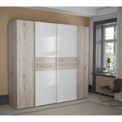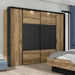 Loftscape Schwebetürenschrank Lucy – Inkl. Beleuchtung – Eiche Artisan Dekor / Dunkelgrau Betonoptik