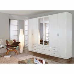 Rauch Blue Drehtürenschrank Homburg I – Hochglanz Alpinweiß – Breite: 136 cm – Mit Spiegeltür/-en