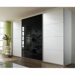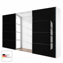 Rauch Orange Schwebetürenschrank Quadra – Alpinweiß / Glas Schwarz – Breite x Höhe: 136 x 210 cm