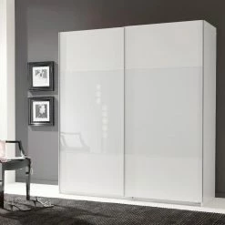 Schwebetürenschrank KiYDOO I – Hochglanz Weiß / Alpinweiß – Höhe: 210 cm – Breite: 136 cm