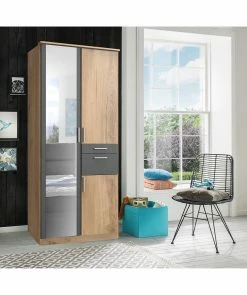 Wimex Drehtürenschrank Julan III – Alpinweiß / Eiche Sägerau Dekor – Ohne Spiegeltür/-en