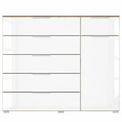 Sideboard SKØP x6+1 – Hochglanz Weiß / Eiche Artisan Dekor – Aluminium