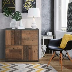 Loftscape Kommode Rison IV – Dunkelgrau / Altholz Dekor