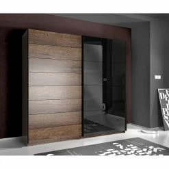 Loftscape Schwebetürenschrank Oliver I – Schlammeiche Dekor / Glas Schwarz