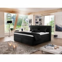 Loftscape Boxspringbett Ingebo Kunstleder – Schwarz – 160 x 200cm – Bonellfederkernmatratze – H2