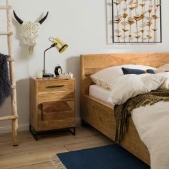 - Front & Korpus: Massivholz Mango, gebeizt & lackiert