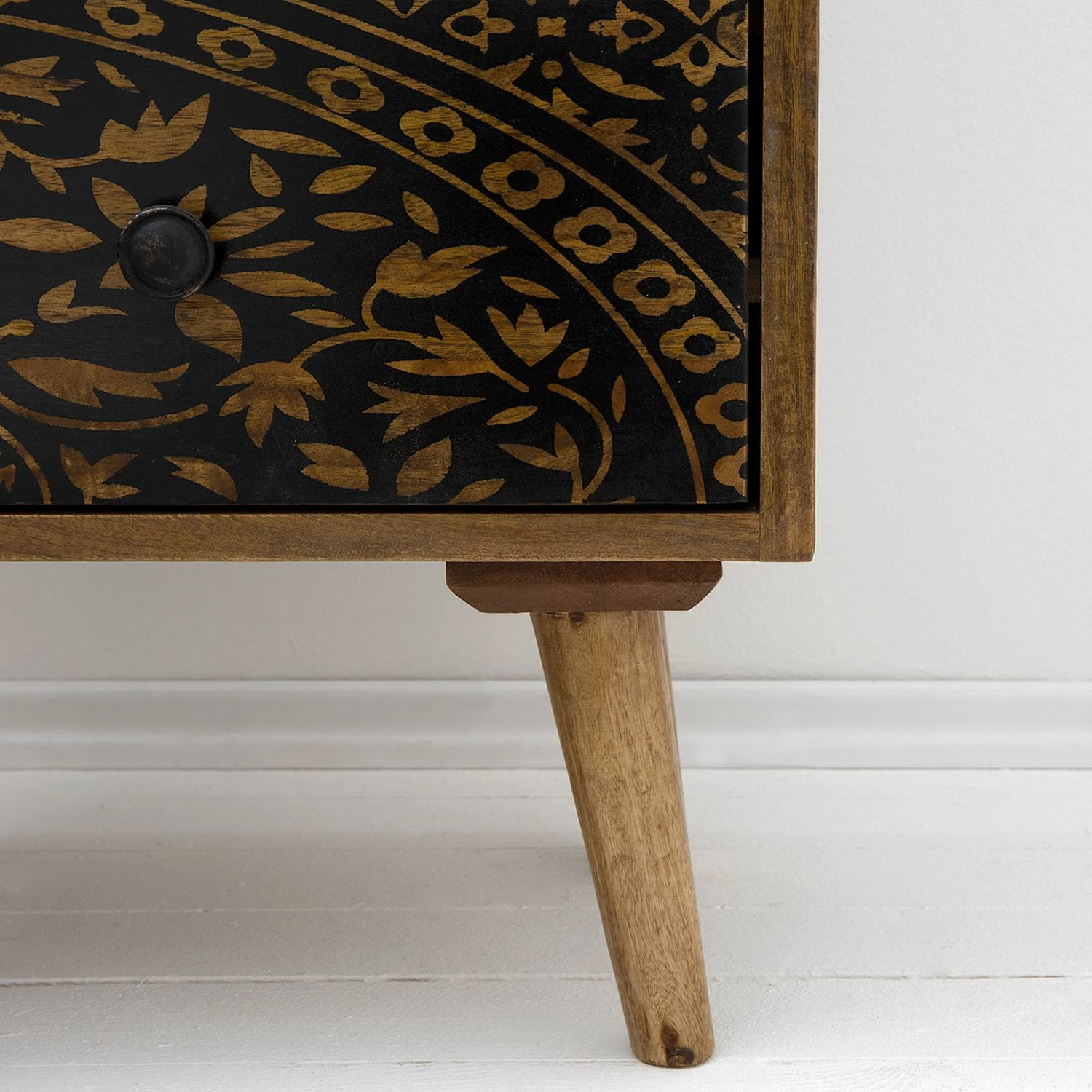 - Korpus, Front & Füße: Massivholz Mango, lackiert