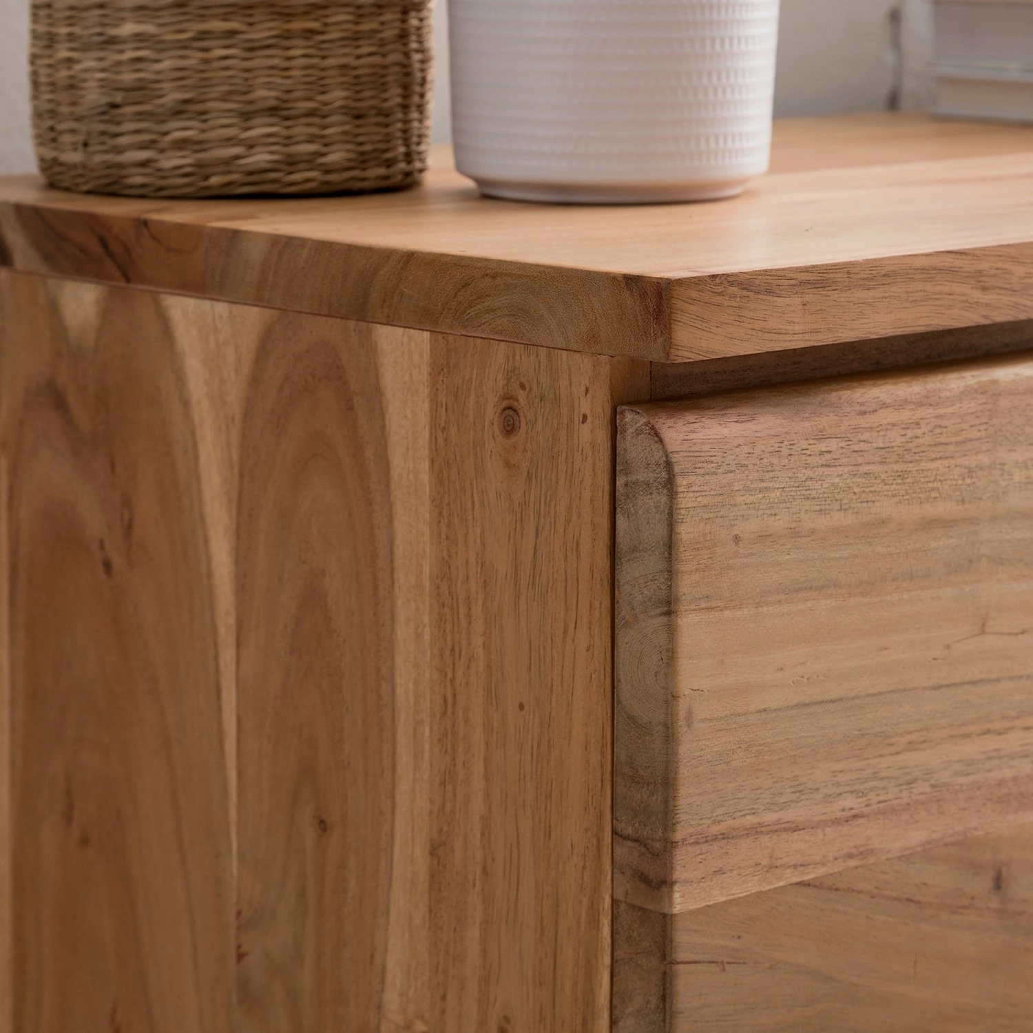 Ars Natura Kommode Vardo – Akazie massiv / Metall – Akazie / Schwarz