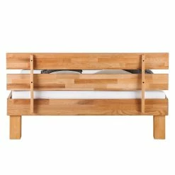 Möbel aus Naturmaterialien verleihen jedem Interieur einen speziellen Charme. Das Massivholzbett AresWOOD reiht sich dank seiner hochwertigen Verarbeitung und der Fertigung von Hand in die Reihe des erstklassigen Mobiliars ein. Die Qualität kommt unter anderem auch durch die perfekte Stabverleimung des Massivholzes zum Ausdruck. Dadurch, dass die Oberfläche der Bettkonstruktion ausschließlich geölt wurde, wirkt der Holzton besonders warm. Bei der Schlafstätte ermöglicht die puristische Gestaltung die Kombination mit unterschiedlichen vorhandenen Einrichtungsgegenständen. Aufgrund des Mittelstegs lässt sich der Lattenrost des Massivholzbetts AresWOOD sicher auflegen und verrutscht nicht. Das Bett ist in verschiedenen Größen und unterschiedlichen Holzarten erhältlich.