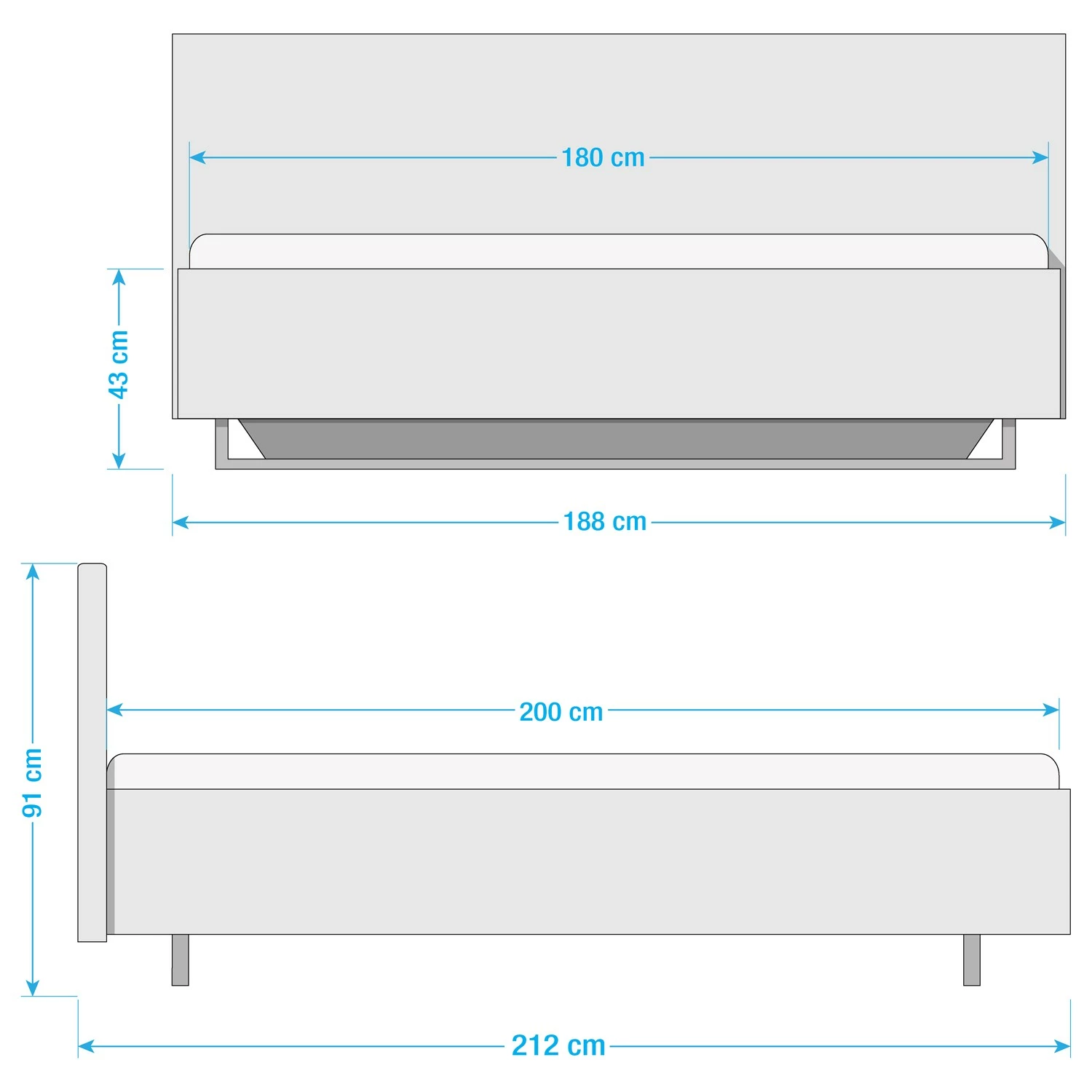 - Bettkantenhöhe: 43 cm