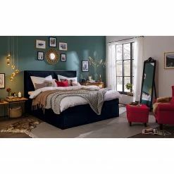 - Das Kopfteil, welches in einer hohen oder niedrigen Variante erhältlich ist, steht mit seiner üppigen Polsterung einem Sofa in nichts nach.