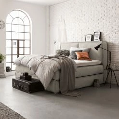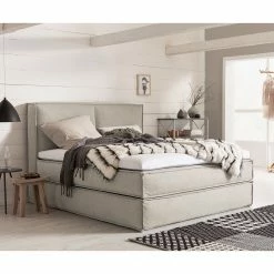 Das Boxspringbett Kinx hält, was es schon beim reinen Betrachten verspricht. Mir seinen prall gefüllten Polstern aus hochwertigem und belastbarem Webstoff steht es der Gemütlichkeit eines Sofas in nichts nach. Der ausgeklügelte und innovative Aufbau des Boxspringbett Kinx hat den Vorteil, dass der Schlafende die perfekte Haptik vorfindet, unabhängig von seinem Körpergewicht und der Liegeposition. Mit seinem schlichten und geradlinigen Design passt das Bett in modern eingerichtete Wohnungen und zu Personen, die Wert auf Purismus und eine schlichte Gestaltung legen.