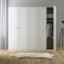 Wer einen Kleiderschrank sucht, der zum Landhaus-Stil passt, wird hier fündig: Das Modell von KiYDOO passt mit seinem klaren Weiß, der traditionellen Bauweise der Drehtüren und den rustikalen Beschlägen bestens in romantische Schlafzimmer mit Landhausflair. Und nicht nur von außen, der Innenraum ist in natürlicher Leinenoptik gehalten. Verschiedene zusätzlich erhältliche Zubehörteile zur praktischen Organisation des Schrankinneren lassen keine Wünsche übrig.