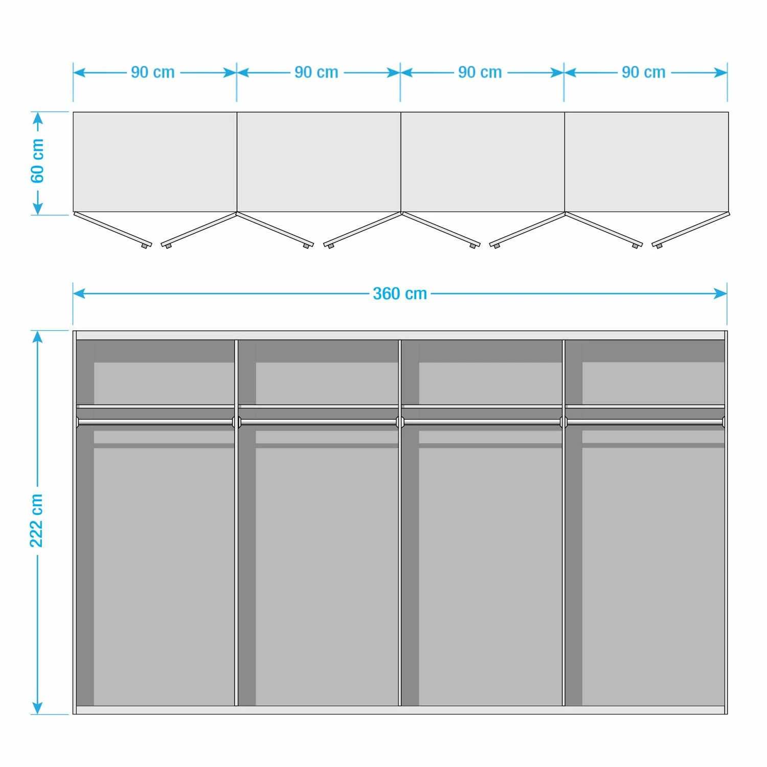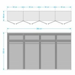 - Inneneinteilung: 90 / 90 / 90 / 90 cm