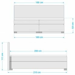 Bequemes Schlafen hat einen Namen: Boxspringbett Ramona. Der Unterbau – die sogenannte Box besteht aus stabilen Holzwerkstoffen und steht auf acht silbernen Metallfüßen. Dadurch wird eine angenehme Luftzirkulation im Raum ermöglicht. Auch der Topper fördert durch das atmungsaktive Klimaband eine angenehme klimatische Atmosphäre beim Schlafen. Der abnehmbare Bezug des Toppers ist durch die antibakteriellen Eigenschaften besonders hygienisch. Er kann außerdem dank des Reisverschlusses leicht abgenommen und in der Waschmaschine gewaschen werden. Perfekt für Allergiegeplagte! Passend zu den angenehmen klimatischen Voraussetzungen versprechen die zwei Bonellfederkenmatratzen mit dem Härtegrad 3 einen hohen Liegekomfort und pure Entspannung.