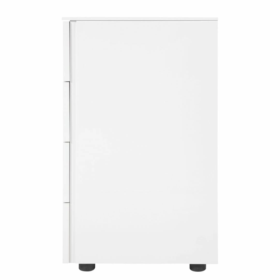 Die elegante Kommode Bianco II schafft in Wohn- und Schlafräumen sowie in Dielen eine moderne und angenehme Wohnatmosphäre. Hochglänzend weiß lackiert passt sich der Schrank bestens einer zeitlosen und stilvollen Einrichtung an. Mit zurückgesetzten Füßen wirkt das Sideboard, als würde es über dem Boden schweben. Vier große Schubladen ohne Griff geben der praktischen Kommode Bianco II viel Stauraum für Bettwäsche, Kleidung und andere Dinge. Durch die vielseitigen Einsatzmöglichkeiten ist der Schrank ein echtes Highlight für jedes Heim.