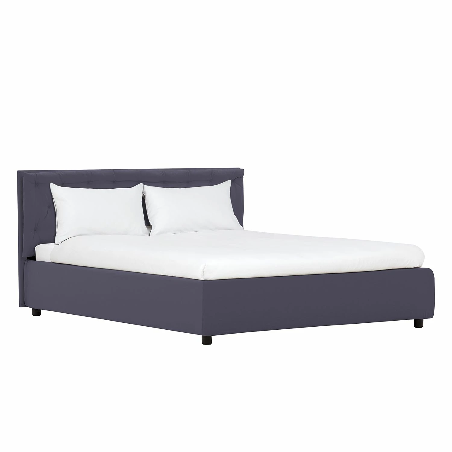 - Die schicke Knopfheftung des Polsterkissens und der rundum textilüberzogene Bettrahmen machen den optischen Reiz dieses Bettes aus.