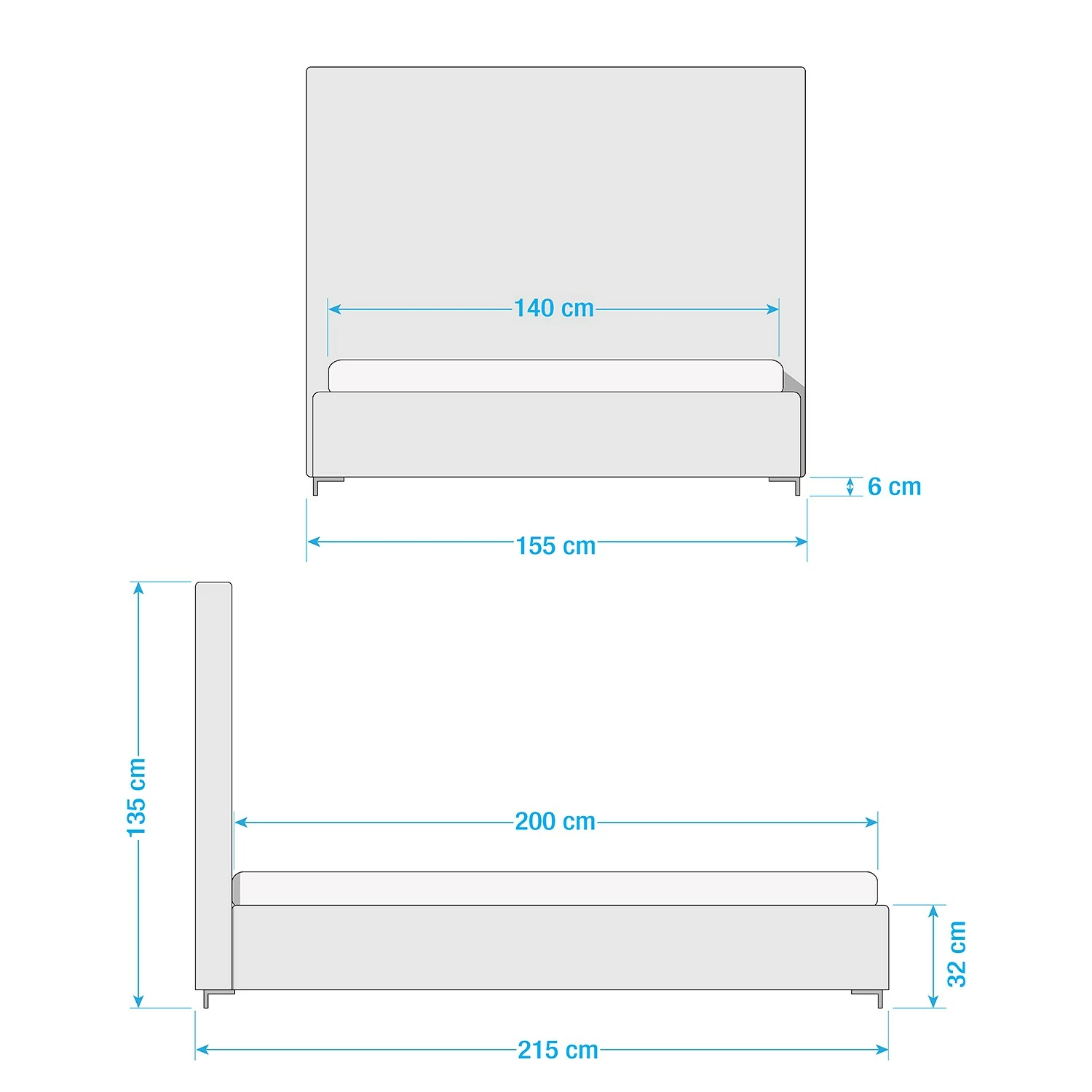 - Liegefläche: 140 x 200 cm