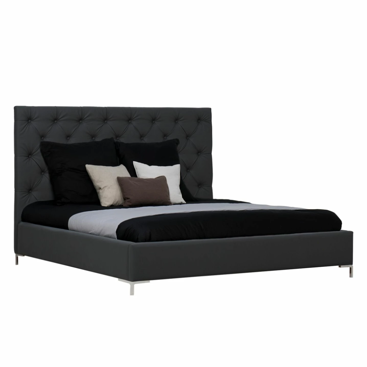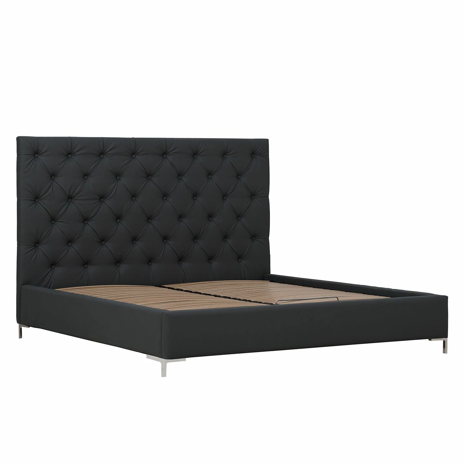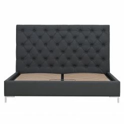 Mit dem Polsterbett Tilia I ist pure Entspannung garantiert. Zudem sorgt es für besonderes Ambiente im Zimmer. Der Bezug aus Kunstleder hinterlässt einen hervorragenden Eindruck und verleiht dem Möbelstück eine elegante Note. Dazu sieht das Kopfteil mit Knopfheftung nicht nur edel aus, sondern hält auch den Komfort des Betts hoch. Einen stabilen Stand des Polsterbetts Tilia I garantieren Füße aus verchromtem Metall, die unter anderem das stabile Grundgestell aus Holz tragen. Mit dem Polsterbett bringt man Glamour in die Einrichtung.