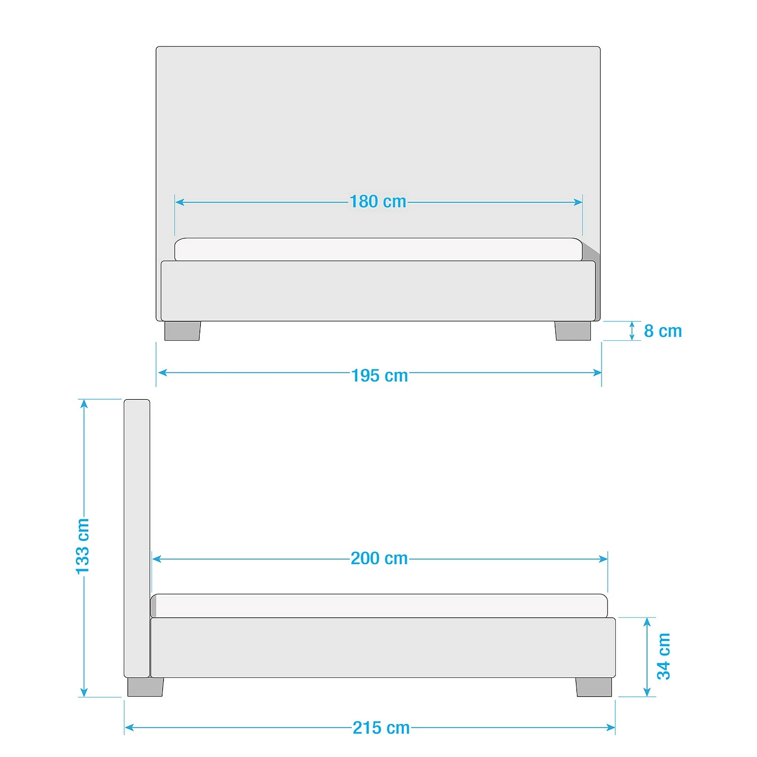 - Kopfteilhöhe: 133 cm