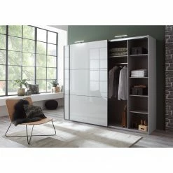 - Lieferumfang: Schwebetürenschrank inkl. 2 Einlegeböden und 2 Kleiderstangen, ohne Dekoration