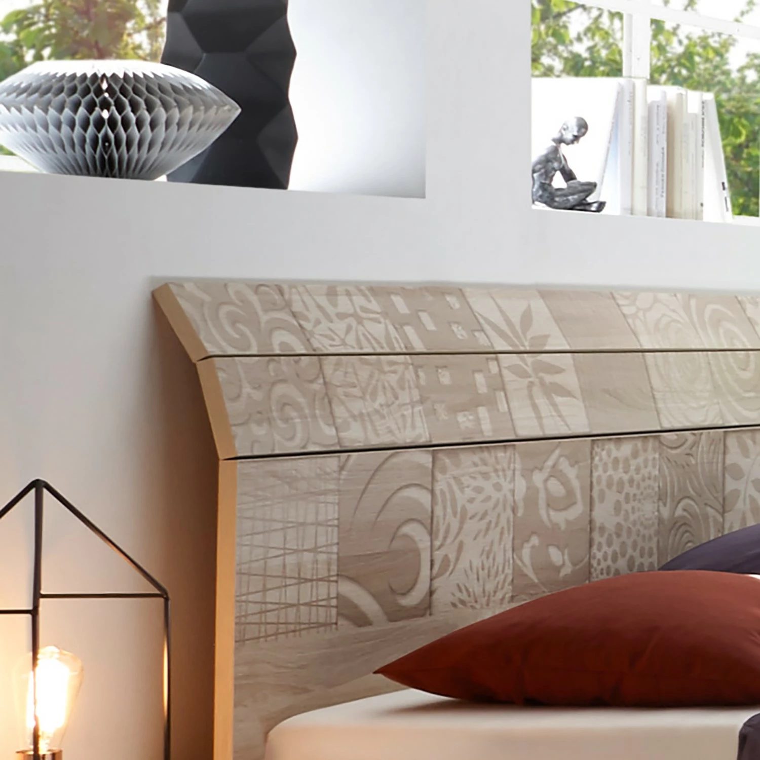 - Kopfteil: Eiche Sonoma Dekor mit Siebdruck