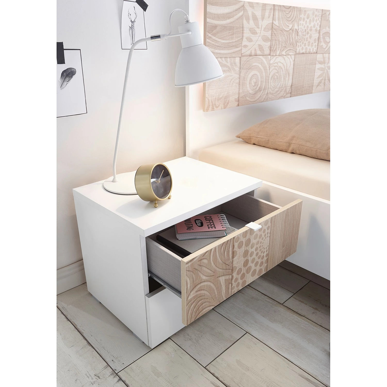 - Front: Eiche Sonoma Dekor mit Siebdruck / Matt Weiß