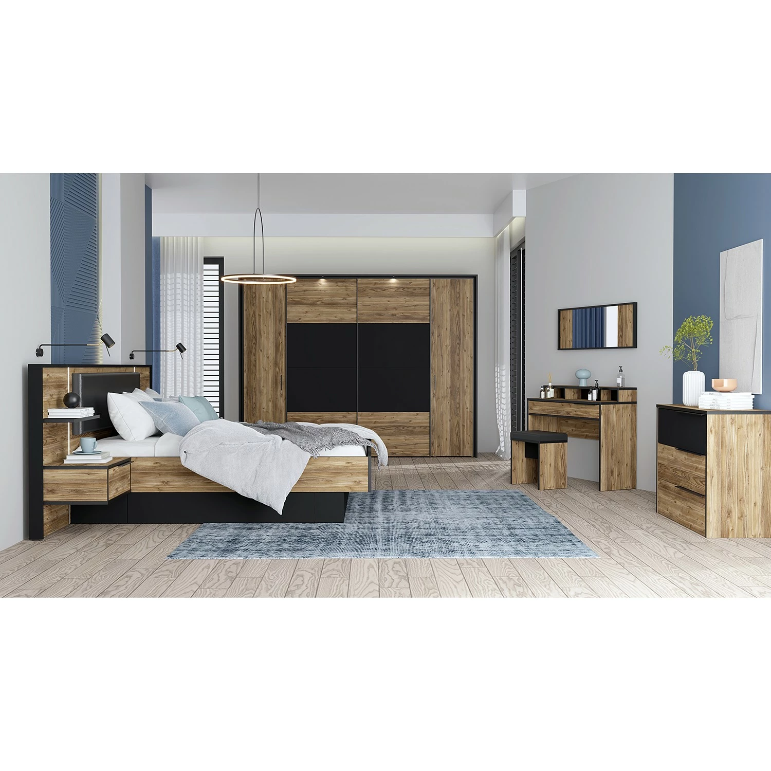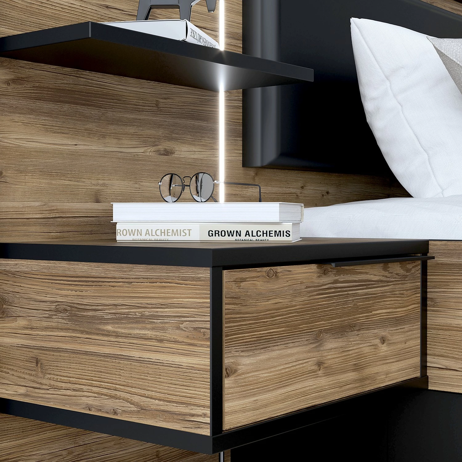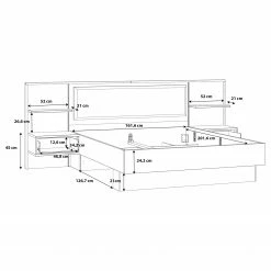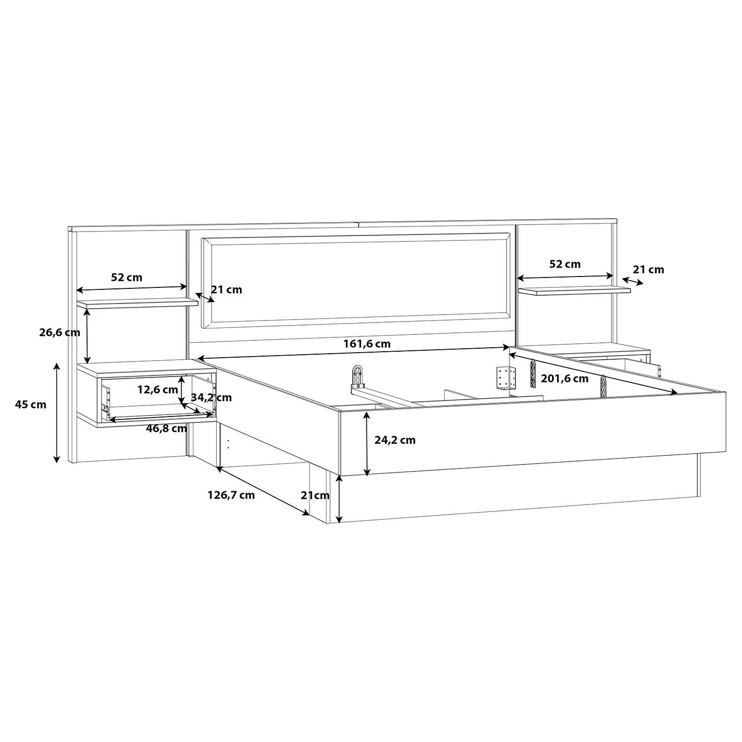 - Lieferumfang: Bett inkl. Beleuchtung & 2 Nachtkommoden, ohne Lattenrost, Matratze & Dekoration