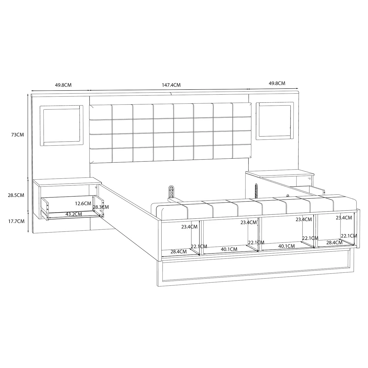 - Lieferumfang: Bett und Nachtkommoden ohne Dekoration
