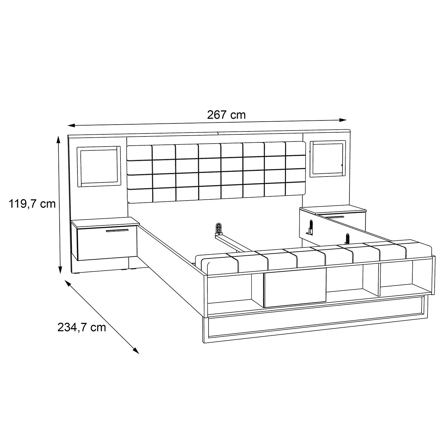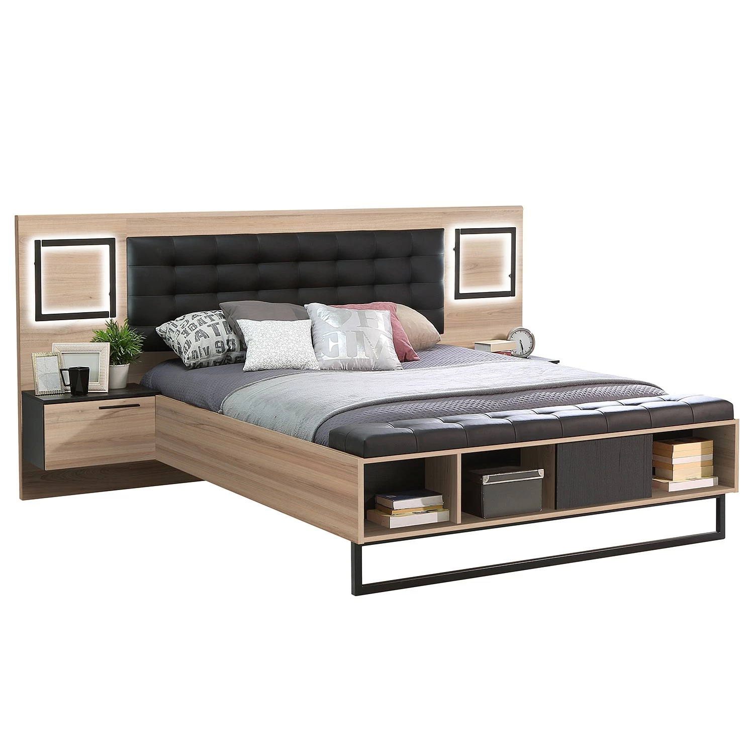 - Lieferumfang: Bettgestell inkl. 2 Nachtkommoden, ohne Dekoration
