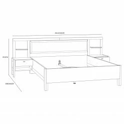 - Lieferumfang: Bettgestell inkl. 2 Nachtkommoden, ohne Dekoration