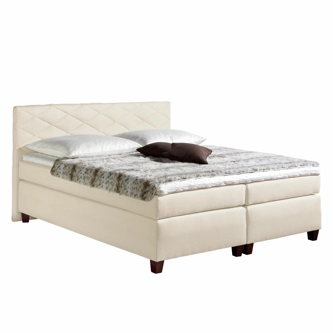 Funktionalität mit Stil: Auch optisch hat das Bett einiges zu bieten. Es ist mit einem hautfreundlichen Strukturstoff überzogen und in einem schönen, zeitlosen Ecru gehalten. Das moderne Design bekommt durch schöne Details wie die dekorative Rautensteppung am Kopfteil oder die geometrischen Bettfüße eine klare Formsprache, die dem Bett eine gewisse Eleganz verleiht. Lehnen Sie sich entspannt zurück und lassen Sie im Boxspringbett Harmony Ihren Tag ausklingen.