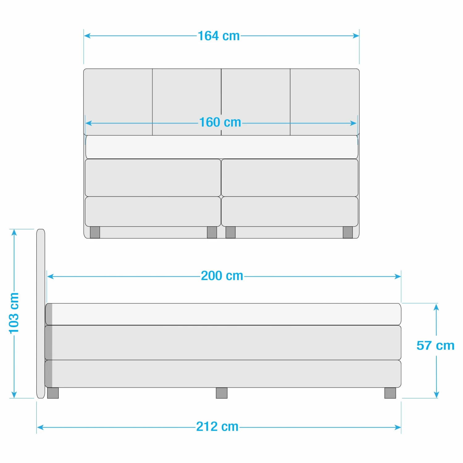 - Bettkantenhöhe: 57 cm