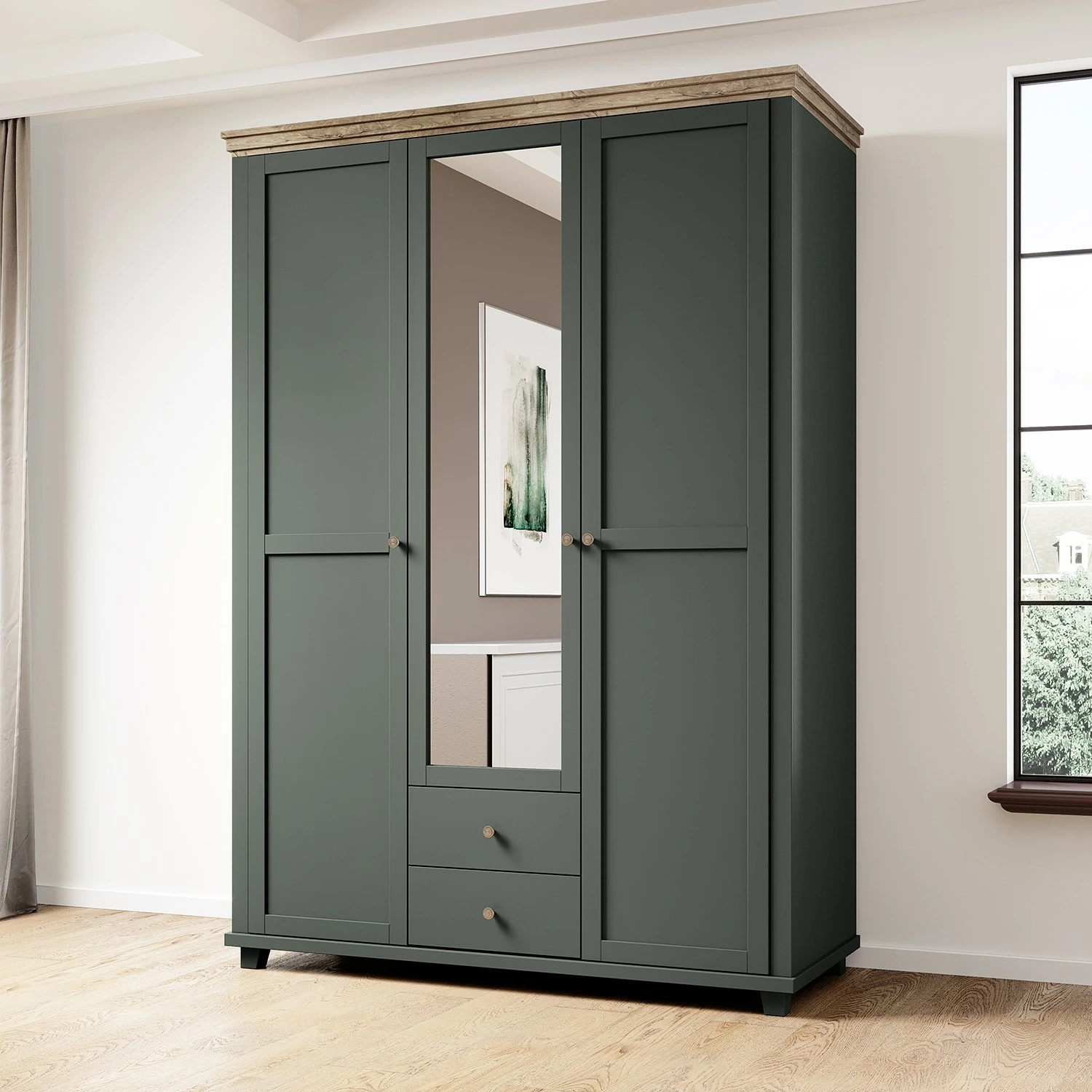 - Lieferumfang: Drehtürenschrank inkl. Spiegel
