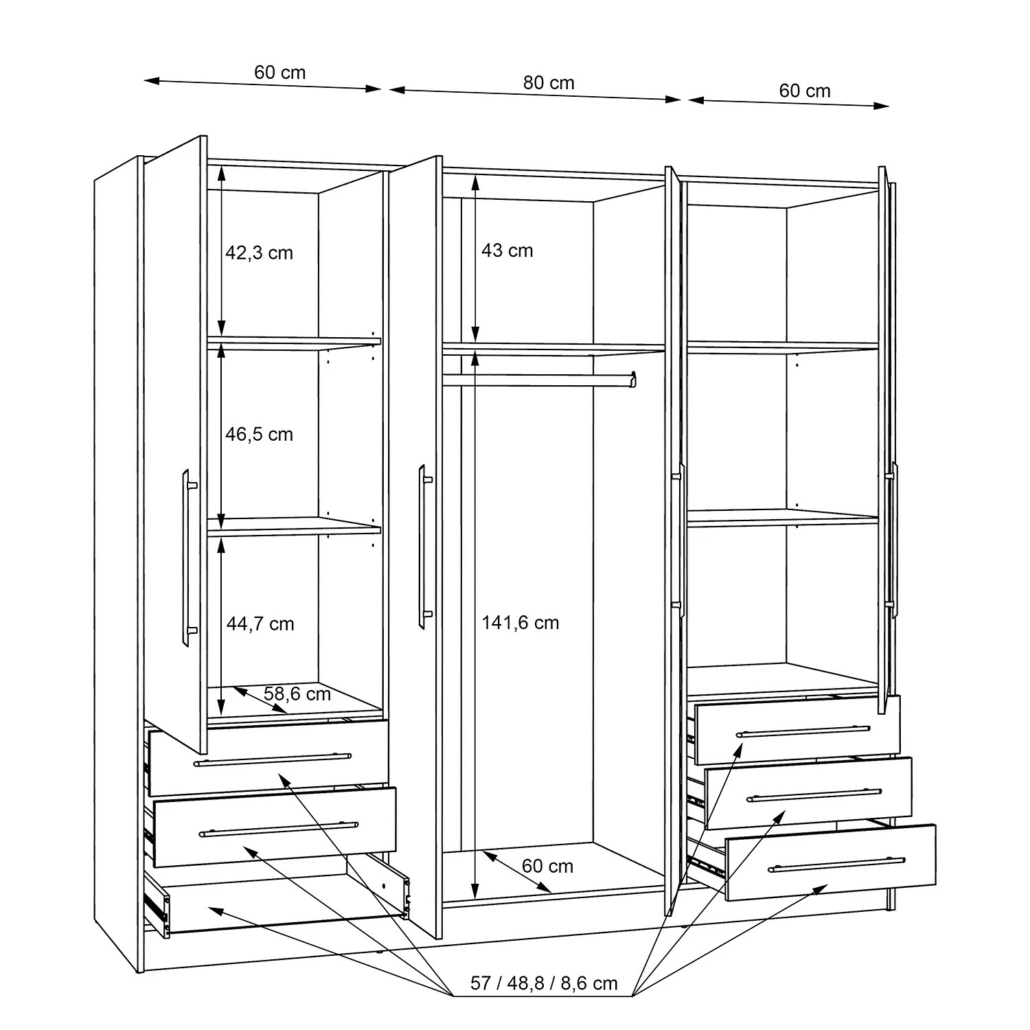 - Innenmaße Schubladen: 57 x 48 cm