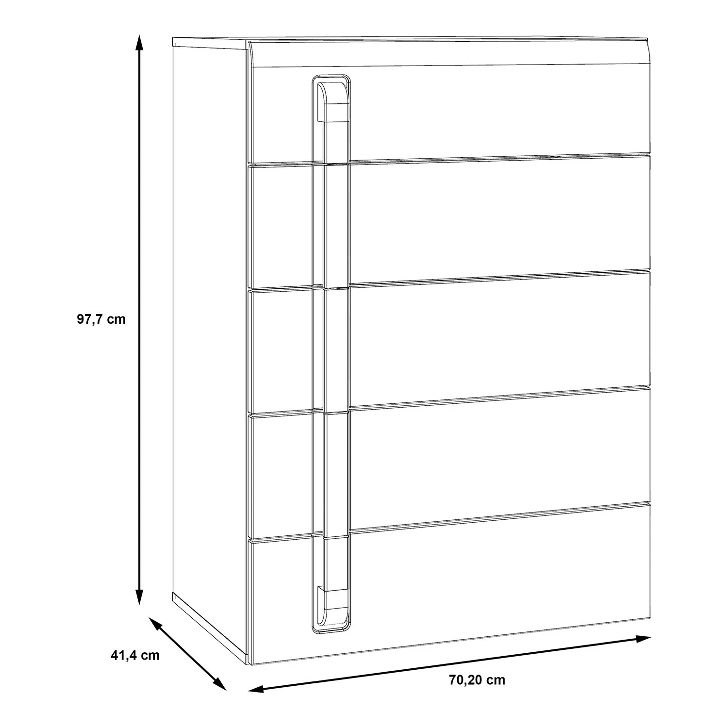 - Weitere Qualitätsmerkmale: Schubladen max. Belastung bis je 3 kg, Max Belastbarkeit bis 10 kg, Stabile Konstruktion aus Spanplatte, Pflegeleichte Oberfläche