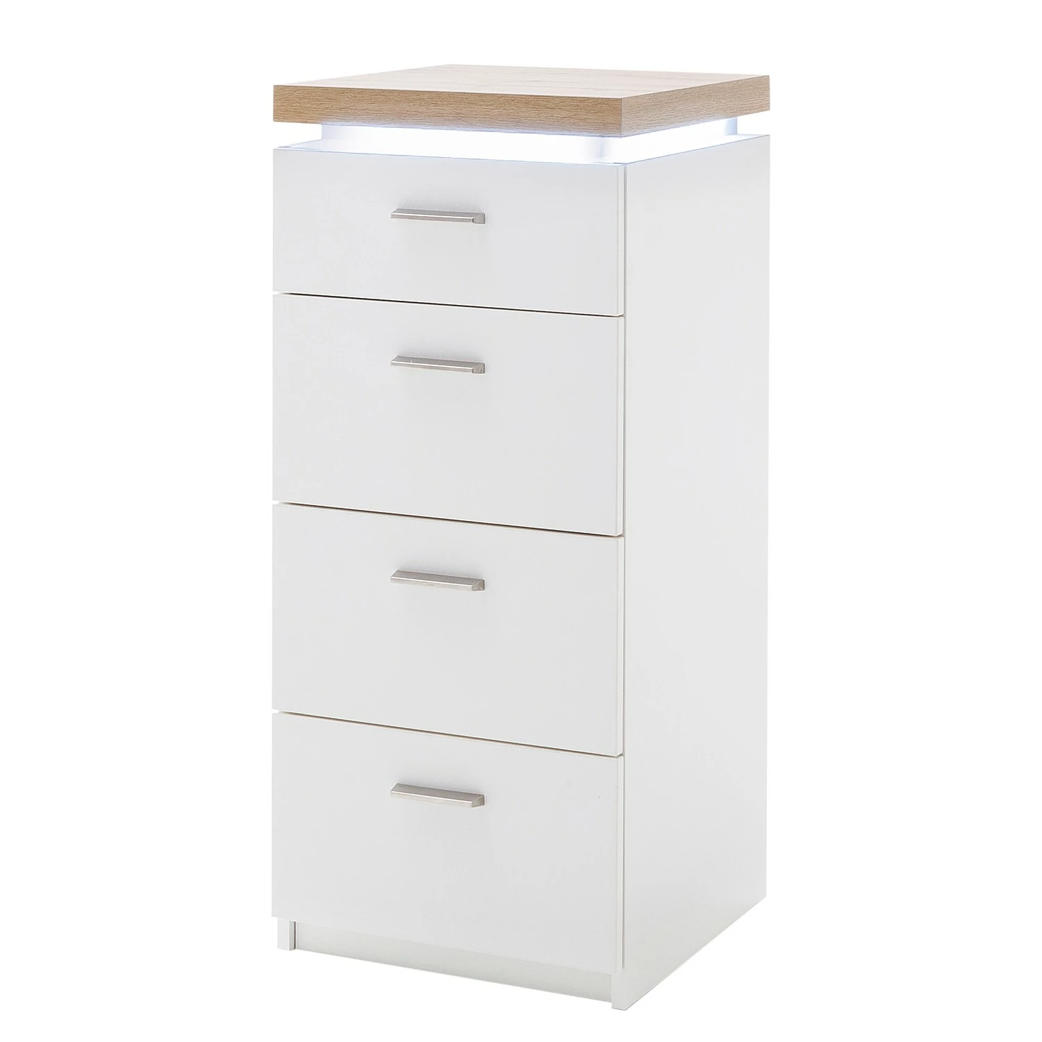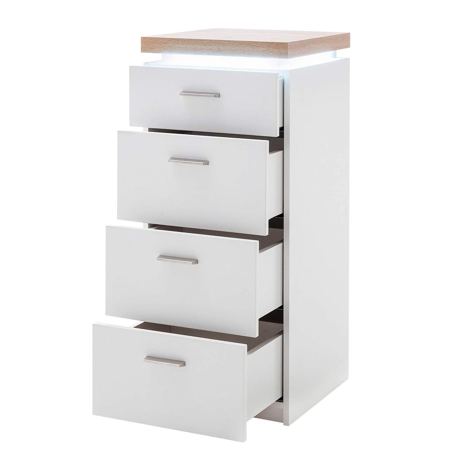 - Lieferumfang: Kommode inkl. Deckplattenbeleuchtung, ohne Dekoration