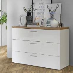 - Korpus: Weiß, Absetzung: Eiche Artisan Dekor