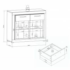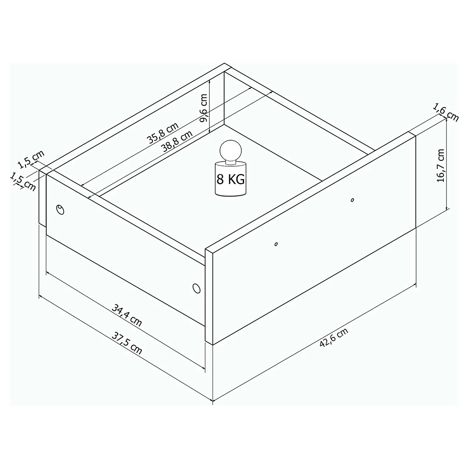 - Innenmaße Schubladen: B/H/T: 35.8 x 9.6 x 34.4 cm