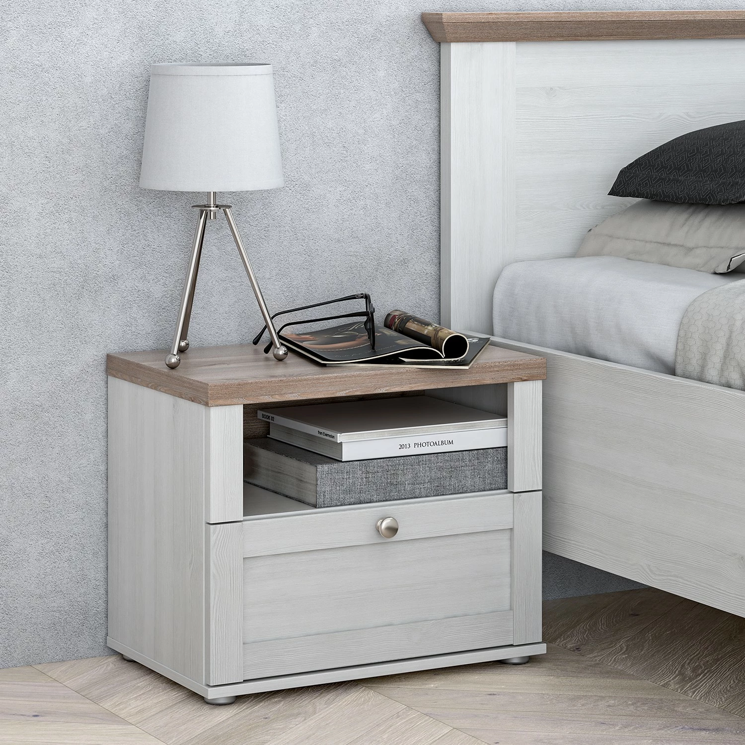 - Lieferumfang: Nachtkommode ohne Dekoration
