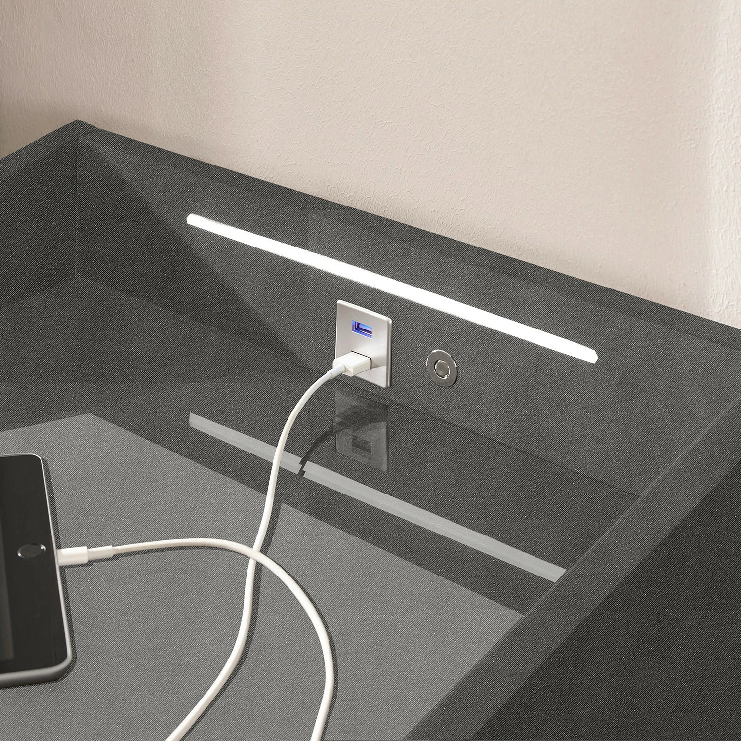 - Lieferumfang: Nachtkommode inkl. LED-Beleuchtung und USB-Anschluss, ohne Dekoration