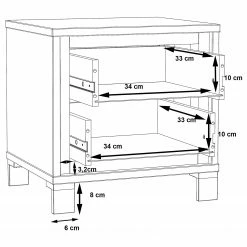 - Innenmaße Schubladen: B x H x T: 34 x 10 x 33 cm