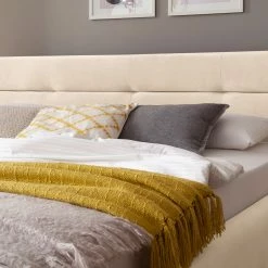 - Lieferumfang: Polsterbett inkl. Kopfteil und Lattenrost, ohne Matratze & Dekoration