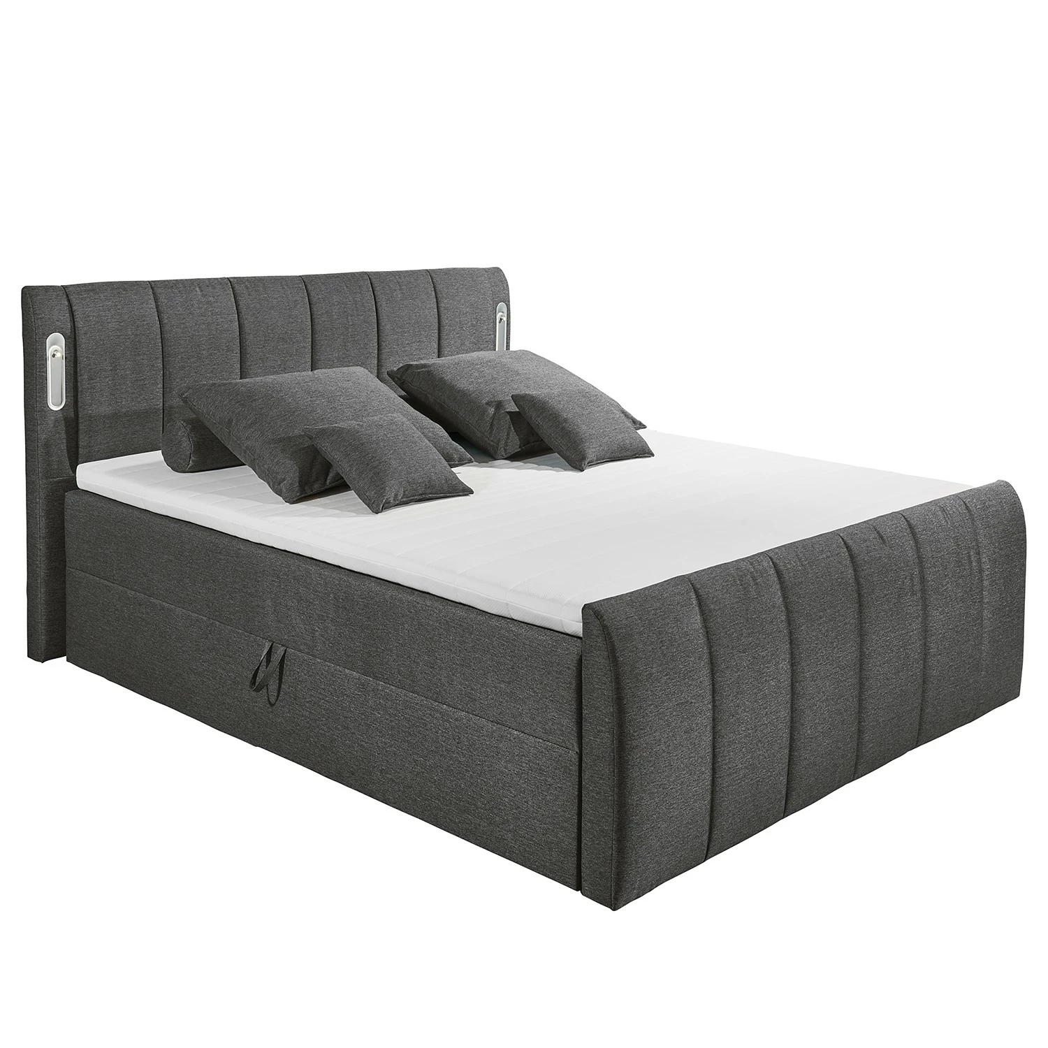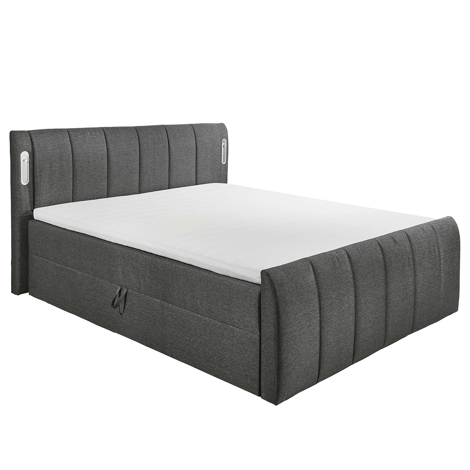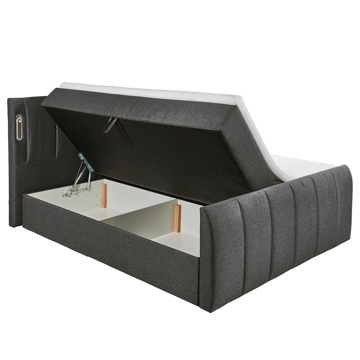 - Lieferumfang: Bett inkl. Bettkasten, Kopfteil, Topper & LED-Beleuchtung, ohne Dekoration