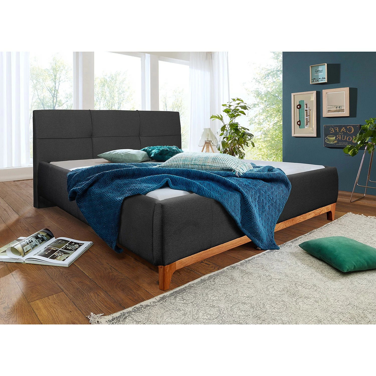 - Lieferumfang: Polsterbett inkl. Kopfteil, ohne Matratze, Lattenrost & Dekoration