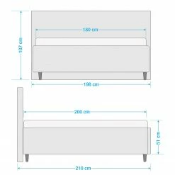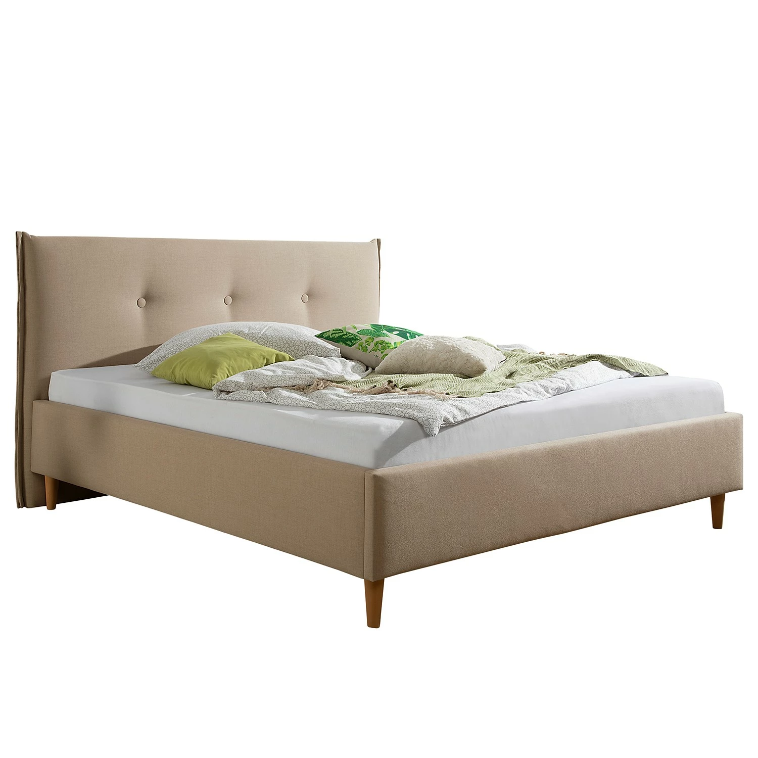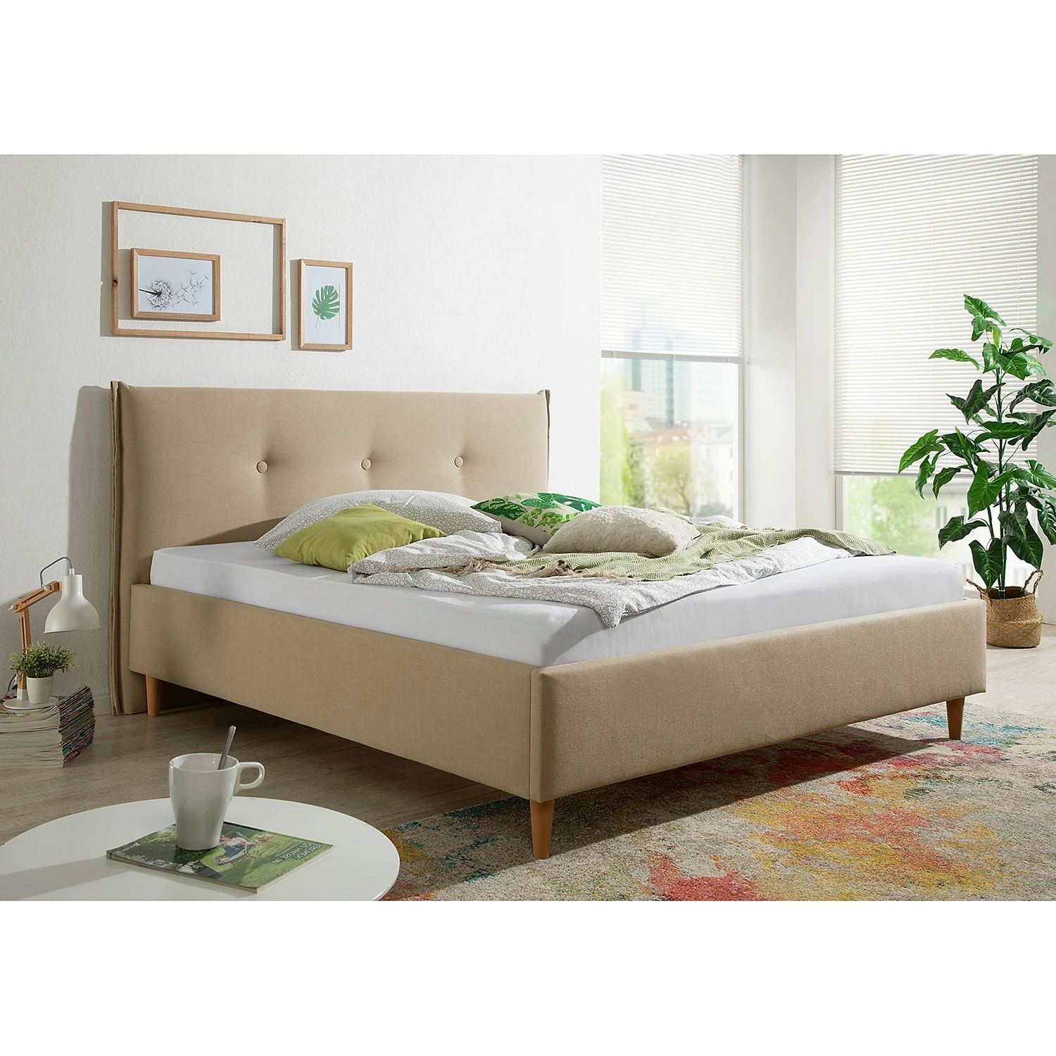 - Weitere Qualitätsmerkmale: Bettgestell mit Kopfteil (mit seitlicher Doppelbiese und stoffbezogenen Knöpfen). 4 Holzfüße buche natur geölt, 15 cm hoch