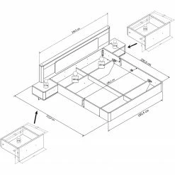 - Bett B/H/T: 280.3 x 95.9 x 213 cm